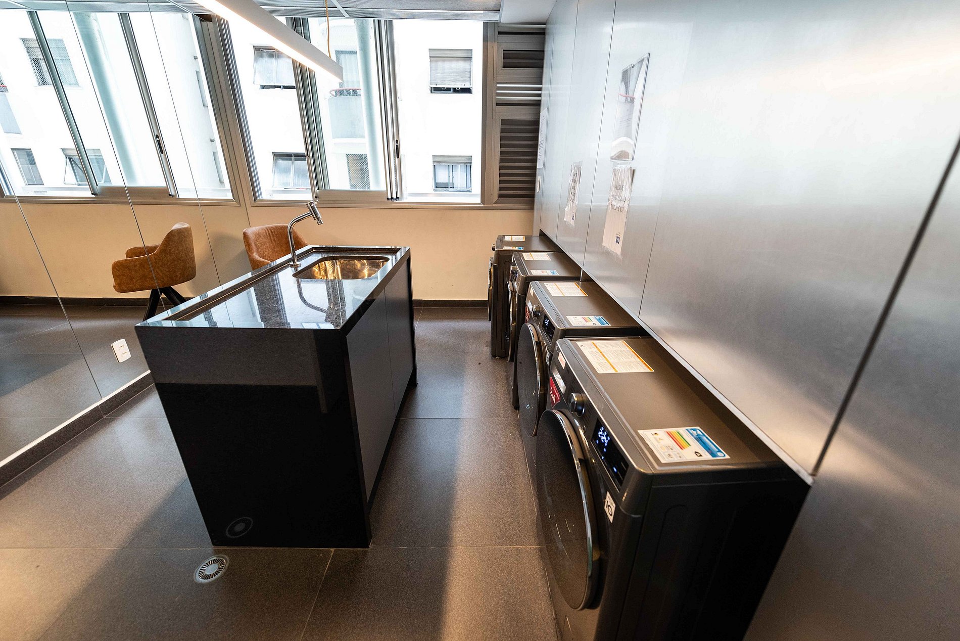 Lavanderia: Acesso permitido para utilização, seguindo as orientações de uso e horários específicos.