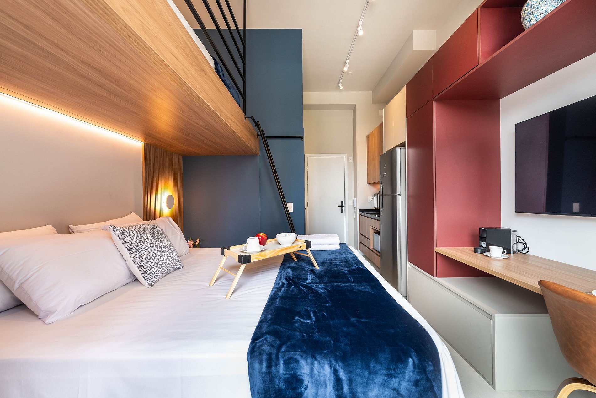 Nosso espaço se destaca pela combinação de funcionalidade e conforto. O ambiente compacto é ideal para quem busca praticidade, especialmente para profissionais na área da Faria Lima. Os hóspedes desfrutarão de um banheiro privativo, cozinha completa, cama queen, cama beliche moderna, varanda com mesa, área pequena para home office, ar condicionado e TV. Além disso, o prédio oferece segurança 24 horas, portaria, academia, coworking, jardim, bicicletário e lavanderia. A proximidade com a estação Fradique Coutinho facilita o acesso a diversas opções de restaurantes, bares e lojas, garantindo uma estadia conveniente e acolhedora.