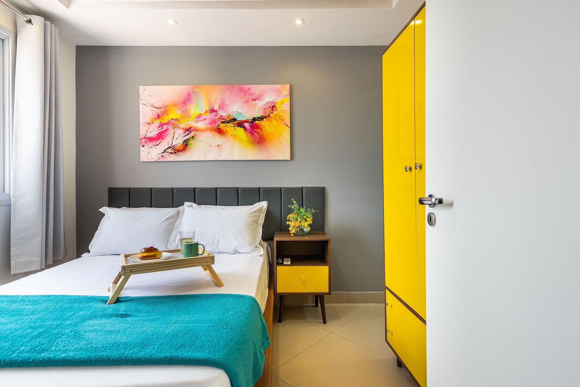 Os hóspedes terão acesso total ao apartamento, incluindo o quarto, cozinha, banheiro e varanda privativa. Além disso, poderão usufruir das áreas comuns do prédio, como a academia e o mercadinho no térreo. No entanto, é importante observar que algumas áreas comuns, como a academia, podem ter horários específicos de funcionamento conforme as regras do condomínio.