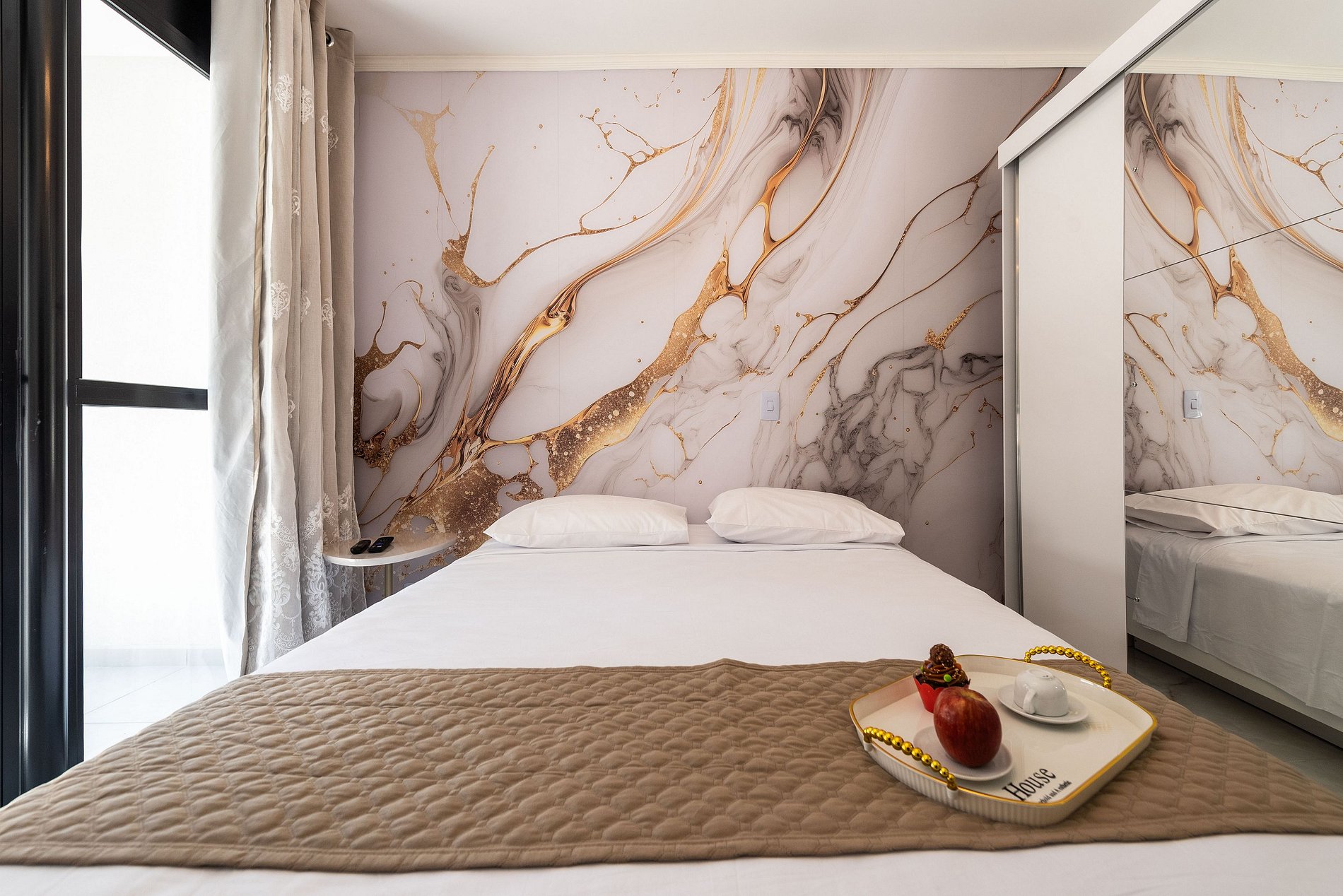 Não deixamos alimentos na unidade. Recomendamos que o hóspede traga itens básicos como água, café, açúcar, entre outros, antes da chegada.