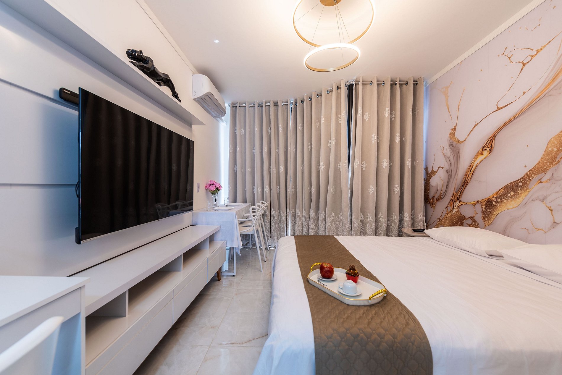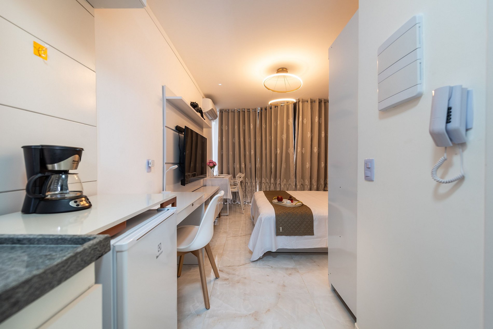 Este studio moderno no New Town SP é a combinação perfeita de conforto e praticidade. Localizado no coração da Liberdade, você estará a poucos passos de mercados, restaurantes e atrações culturais. A decoração clean e funcional maximiza o uso do espaço, oferecendo um ambiente acolhedor e confortável. A cama confortável, o ar-condicionado e o Wi-Fi rápido garantem uma estadia tranquila, seja para descanso ou trabalho. A cozinha equipada oferece praticidade para refeições rápidas, enquanto a TV permite momentos de lazer. O prédio, novo e a localização é imbatível, com fácil acesso ao metrô, tornando a mobilidade pela cidade mais conveniente. Se você busca conforto e uma ótima localização em São Paulo, este é o lugar ideal para sua estadia.