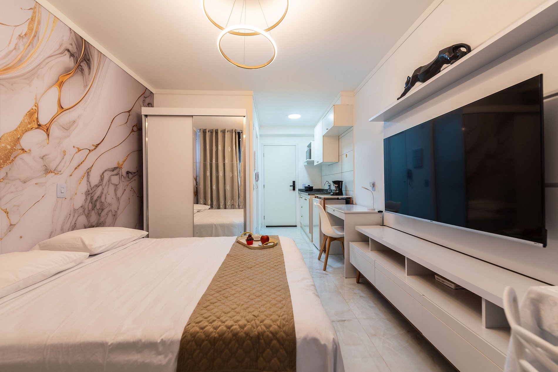 Os hóspedes terão acesso total ao studio, com total privacidade para aproveitar as comodidades como cama confortável, cozinha equipada, Wi-Fi rápido e TV. O apartamento foi projetado para proporcionar praticidade e conforto. No entanto, como estamos em um condomínio, pedimos que os hóspedes respeitem o regulamento interno e as normas de convivência do prédio. O acesso às áreas comuns, como o hall de entrada, elevadores e demais instalações, é permitido, mas deve ser feito com respeito e seguindo as regras do local. As áreas comuns pode estar sujeito a horários e condições específicas. Nosso objetivo é garantir uma experiência tranquila para todos, respeitando a convivência harmoniosa dentro do prédio.