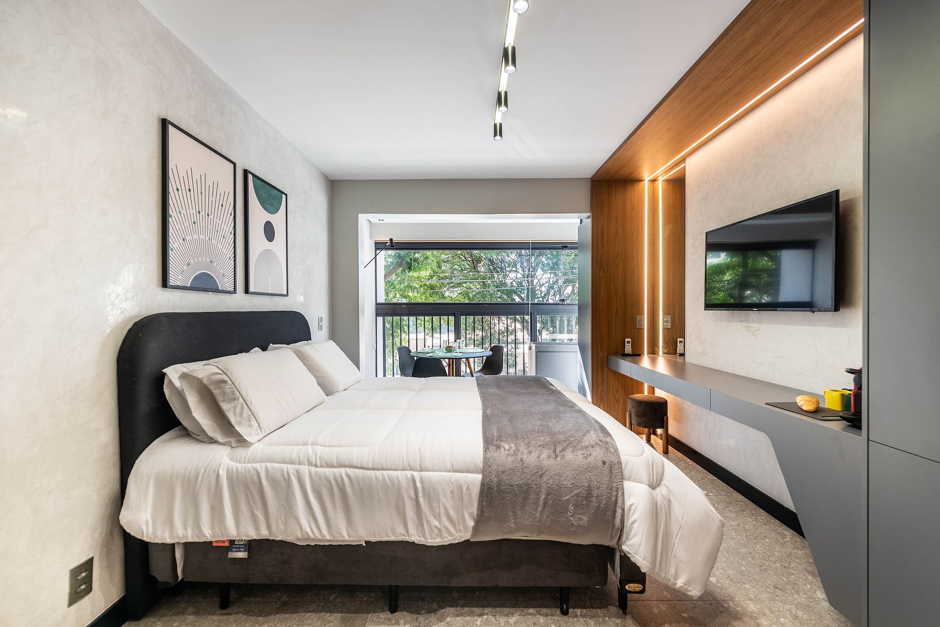 Nosso studio moderno e aconchegante foi projetado para oferecer máximo conforto e praticidade, especialmente para quem vem curtir os eventos no Allianz Parque. Com varanda estendida, iluminação natural e decoração contemporânea, o ambiente é perfeito para relaxar após um dia agitado. A cama de casal com cama auxiliar acomoda até 3 pessoas com conforto. Conta com ar-condicionado, Wi-Fi rápido, cozinha equipada e banheiro com aquecedor de toalhas — tudo pensado para sua estadia ser agradável e sem preocupações.
