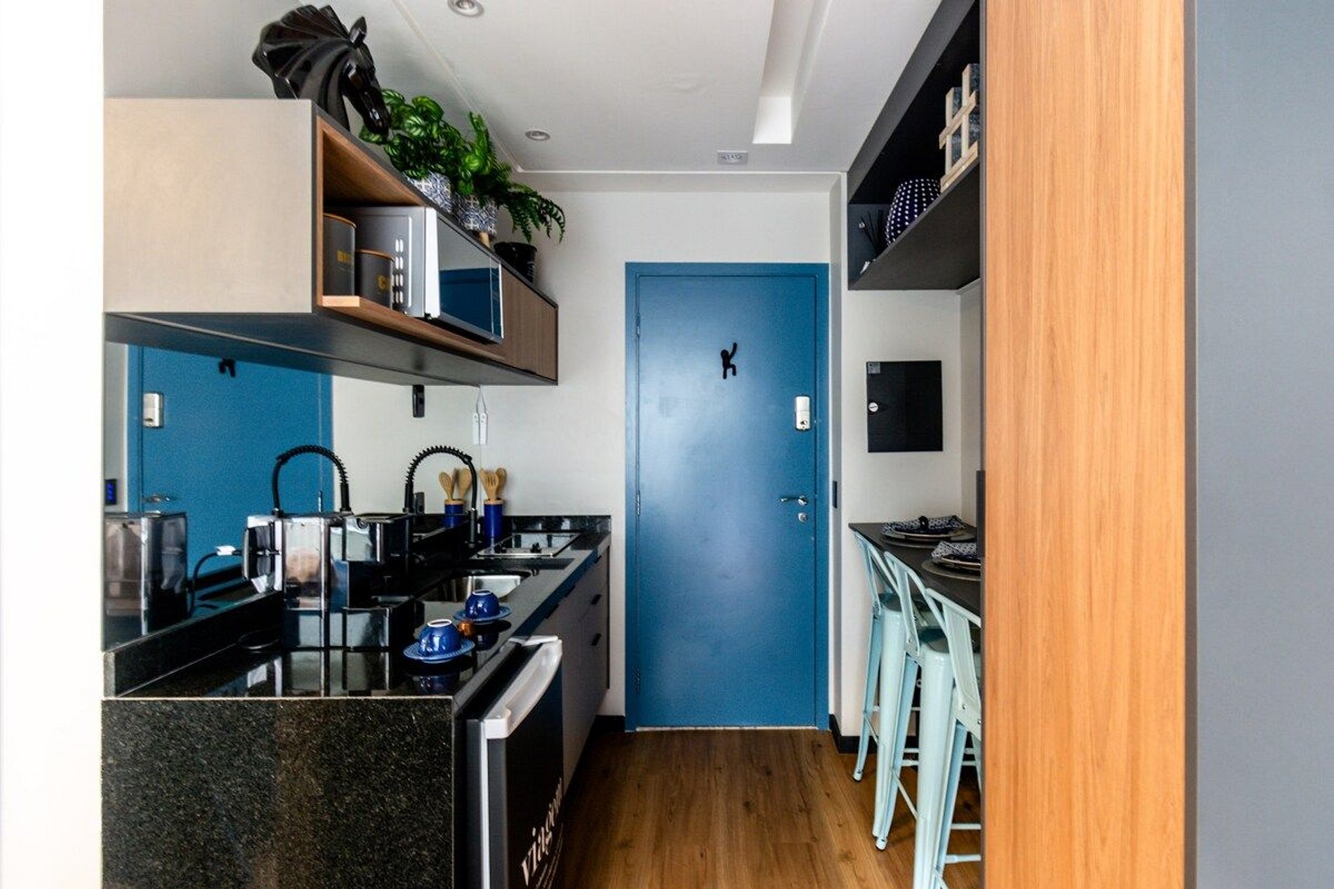 O espaço foi recentemente decorado e mobiliado, usamos algumas referências em decoração para trazer uma experiêcia única e aconchegante em um espaço reduzido de apenas 26 m², apesar de seu tamanho, ele está apto a receber estadias de curta e média duração, com todo o conforto e praticidade.