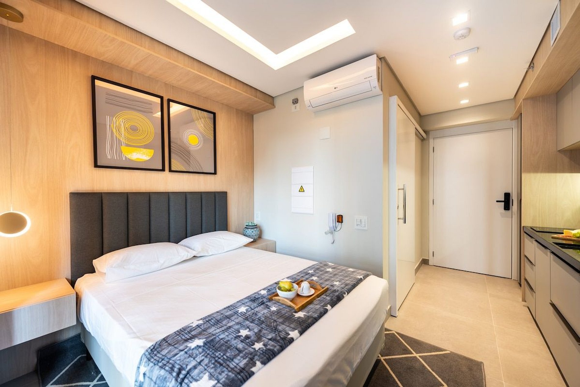 Nosso Loft é compacto, design moderno e bem decorado, tem 22 metros quadrados de área, contém uma cama de casal aconchegante e um chuveiro delicioso. Ideal para quem vem a trabalho ou a passeio. O edifício é lindíssimo e oferece comodidades como: piscina, coworking, academia e lavanderia OMO, facilitando a hospedagem e conforto de nossos hóspedes.