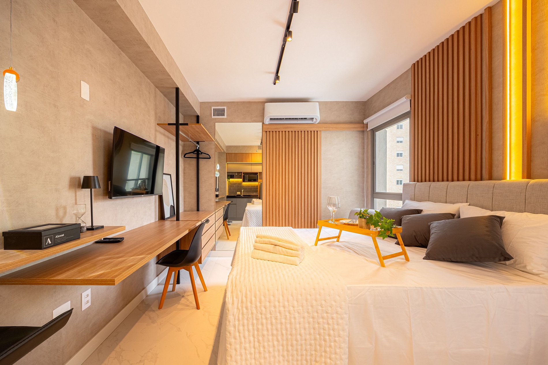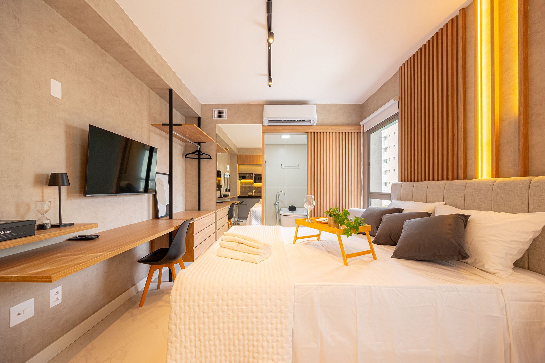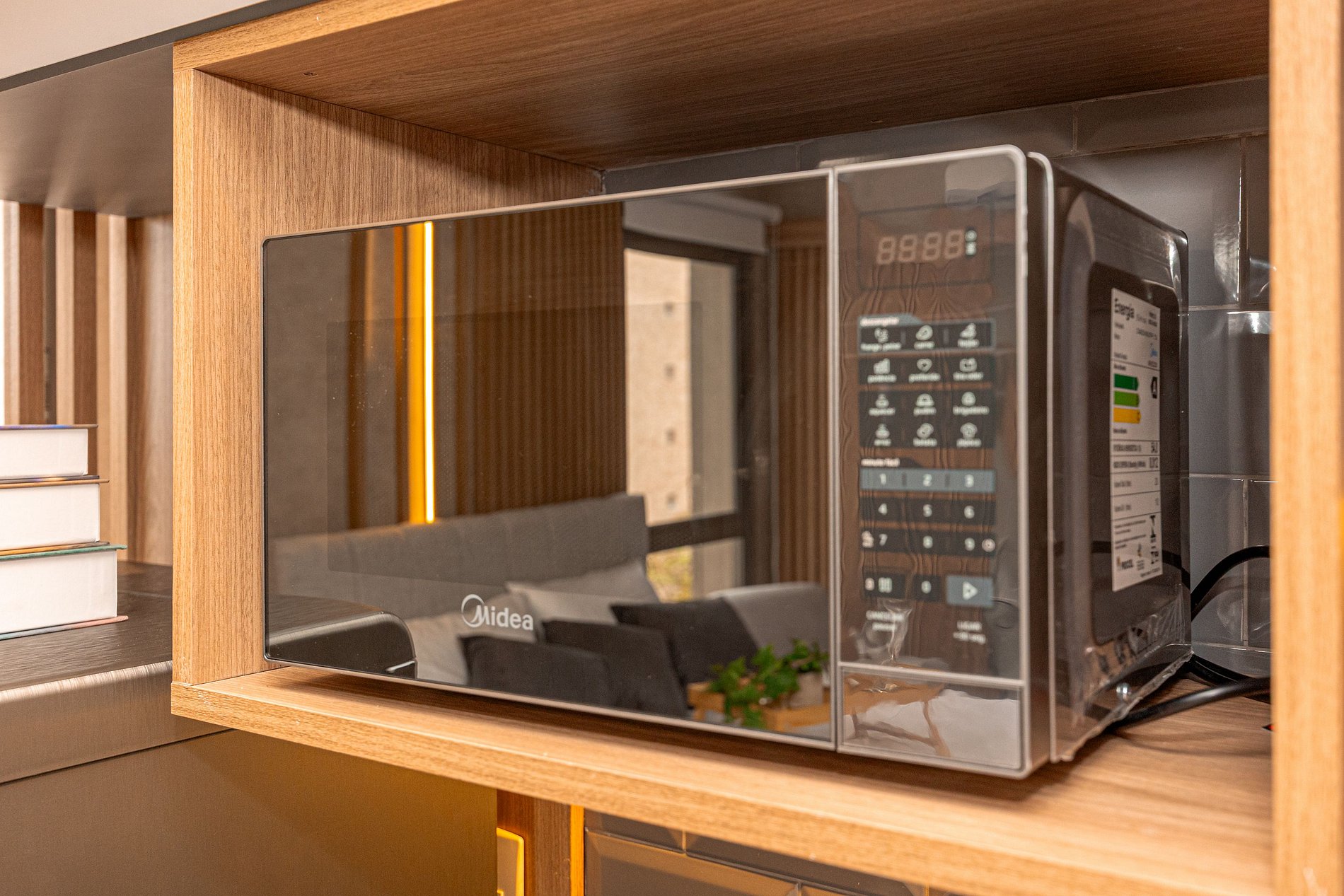 O studio é compacto e ideal para viagens curtas, com praticidade para refeições rápidas. Por estar em uma grande metrópole, é possível ouvir barulhos eventuais de vizinhos, trânsito ou obras. Recomendamos que providencie itens de mercado antes da chegada; há um Mini Pão de Açúcar na rua de trás que pode ser uma ótima opção para suas compras.