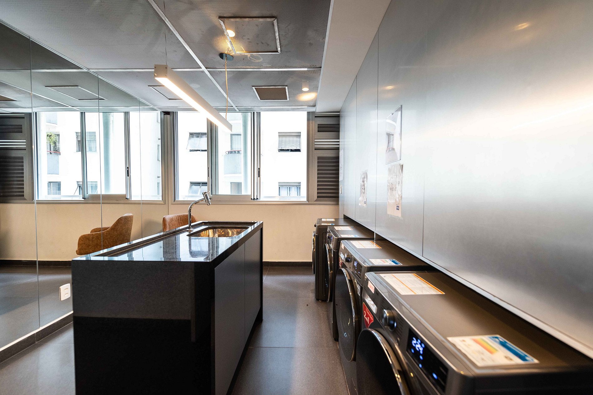 Lavanderia: Acesso permitido para utilização, seguindo as orientações de uso e horários específicos.