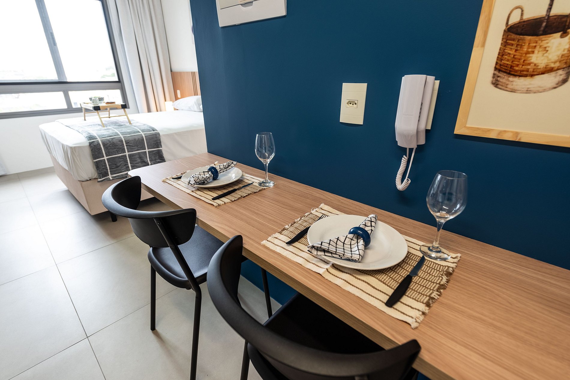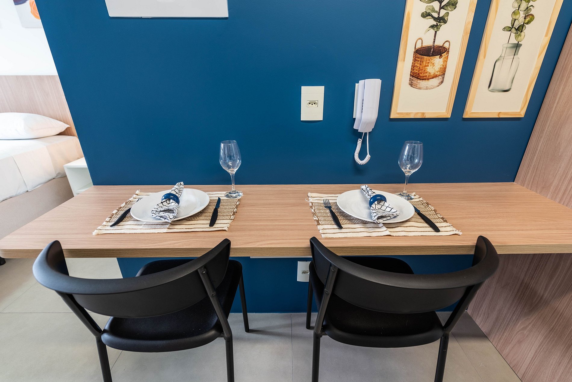 Nosso studio oferece uma experiência prática e acolhedora em um prédio novo, com design moderno e uma linda vista da cidade. A localização privilegiada, colada à estação Carrão do metrô, facilita deslocamentos por toda São Paulo. A cozinha compacta e completa, o Wi-Fi rápido, a mesa de trabalho e o enxoval de qualidade garantem conforto tanto para quem vem a lazer quanto a trabalho. Tudo foi pensado para que o hóspede se sinta em casa.