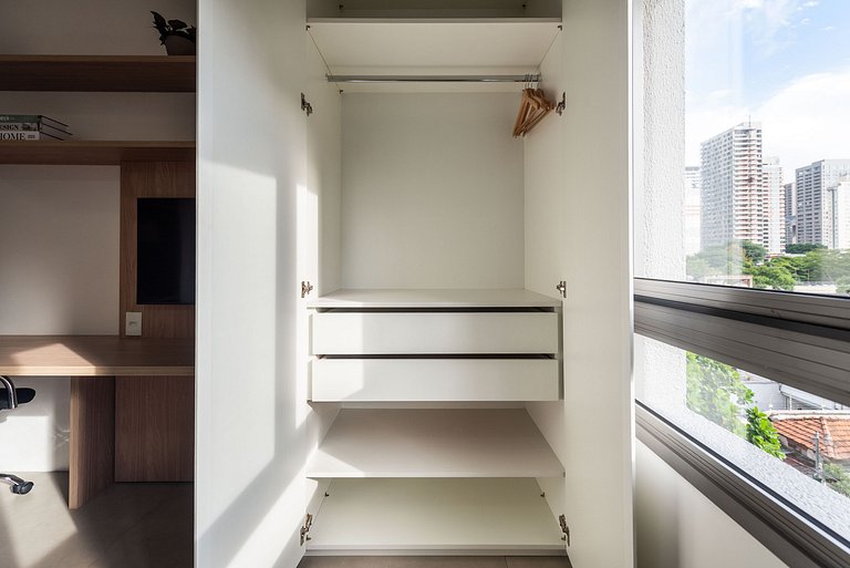 Com 25m², ele é compacto, moderno e super funcional — ideal para quem precisa de conforto em uma localização estratégica de São Paulo.