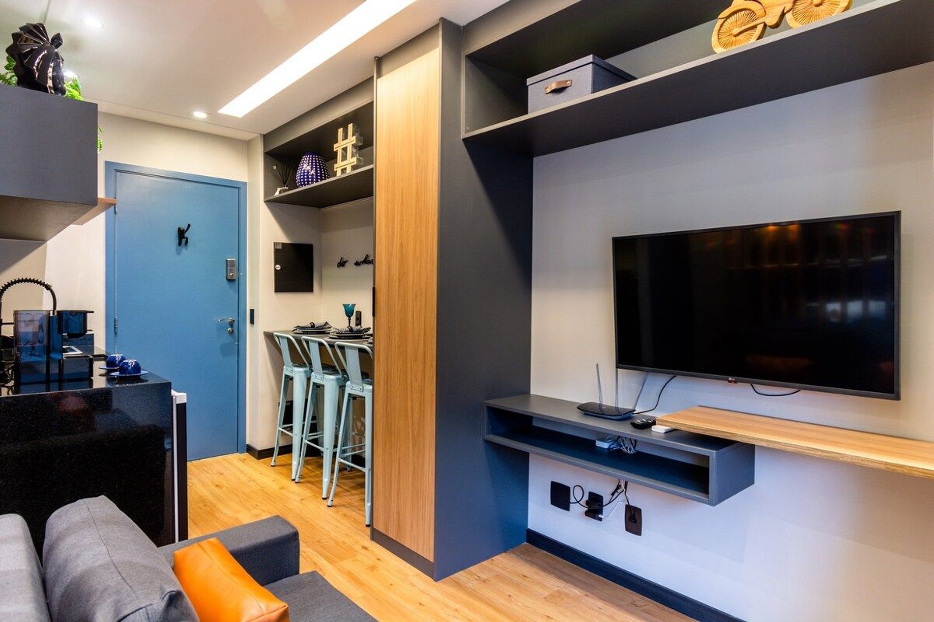 O espaço foi recentemente decorado e mobiliado, usamos algumas referências em decoração para trazer uma experiêcia única e aconchegante em um espaço reduzido de apenas 26 m², apesar de seu tamanho, ele está apto a receber estadias de curta e média duração, com todo o conforto e praticidade.