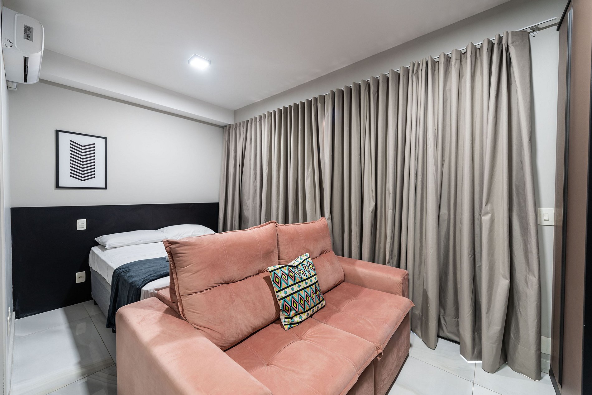 A unidade está localizada em um prédio conceito com portaria 24h, câmeras e controle de acesso. O check-in é 100% digital. Disponibilizamos roupas de cama, toalhas e itens básicos de higiene (sem reposição). Importante respeitar o regulamento interno do condomínio e tirar todas as dúvidas pelo campo de mensagem.