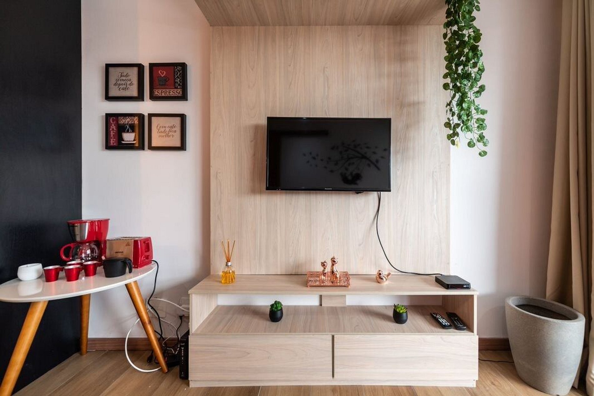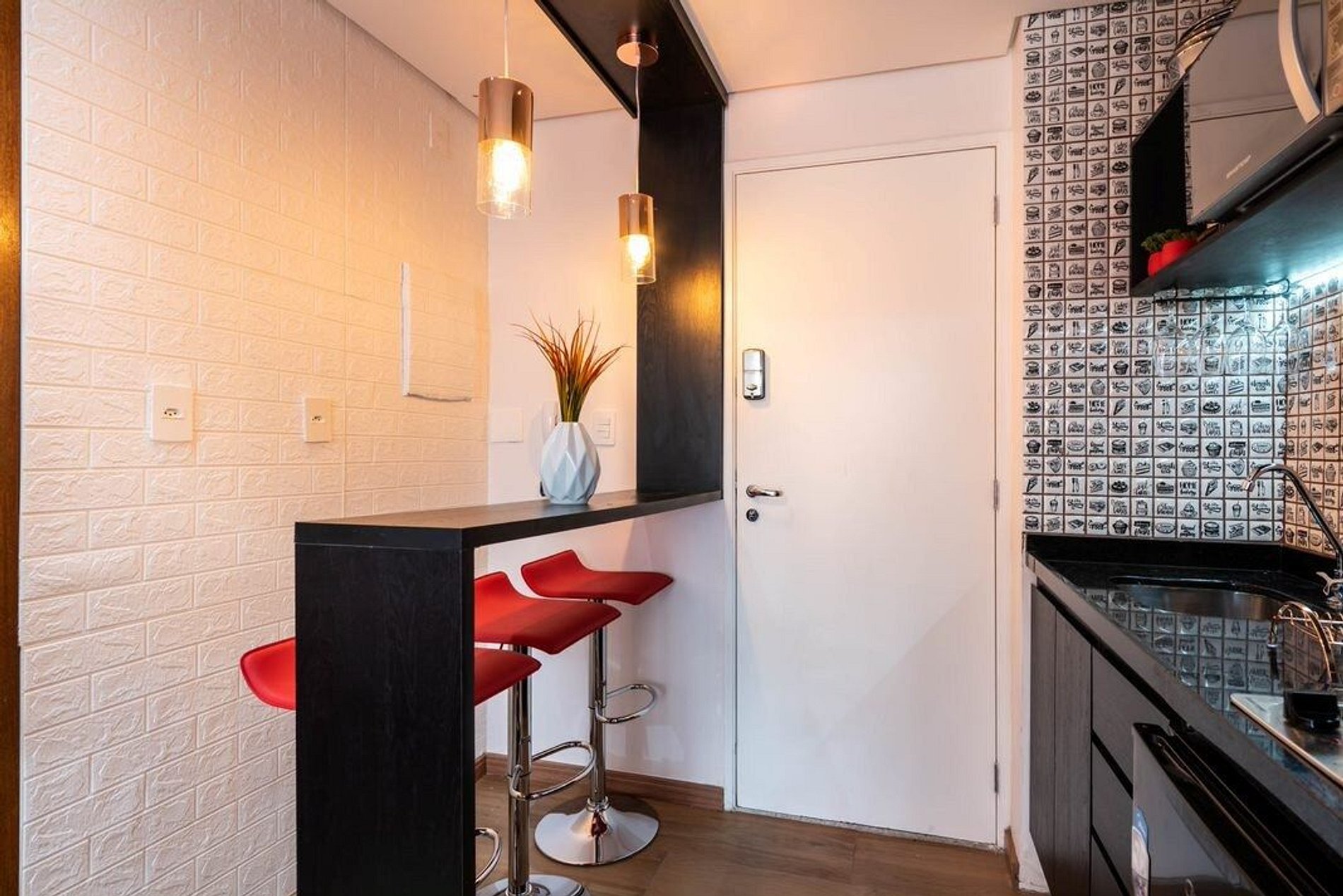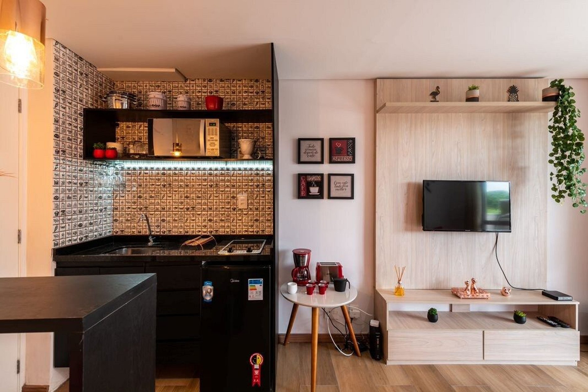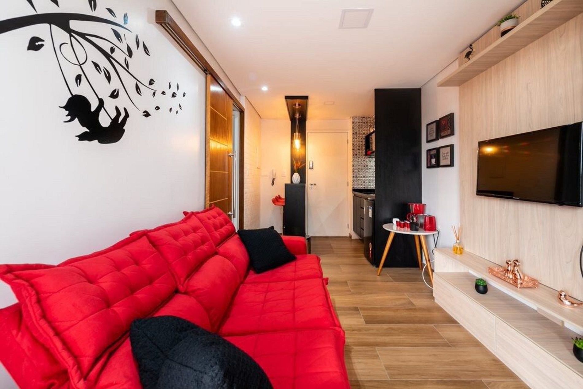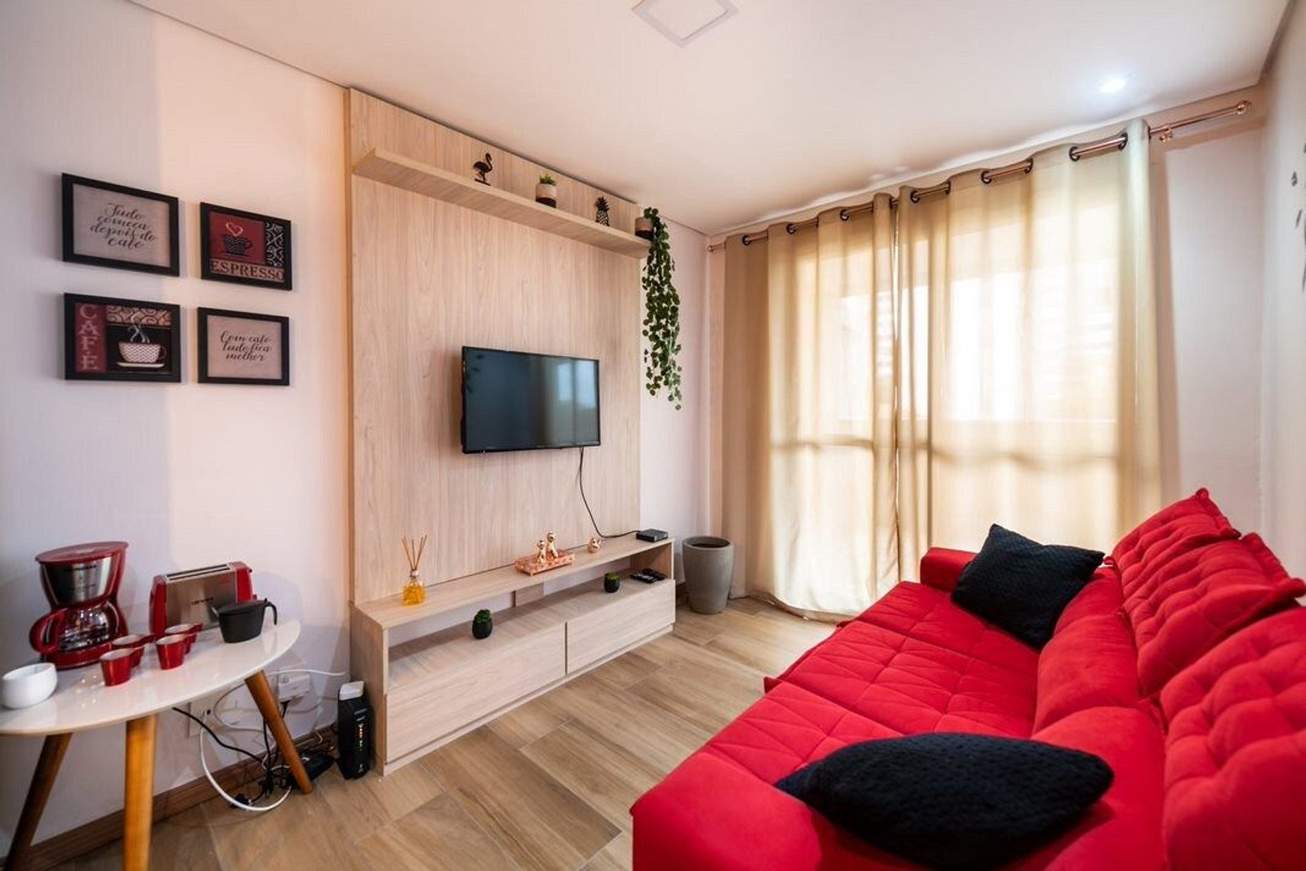Espaço novo, decorado e confortável.