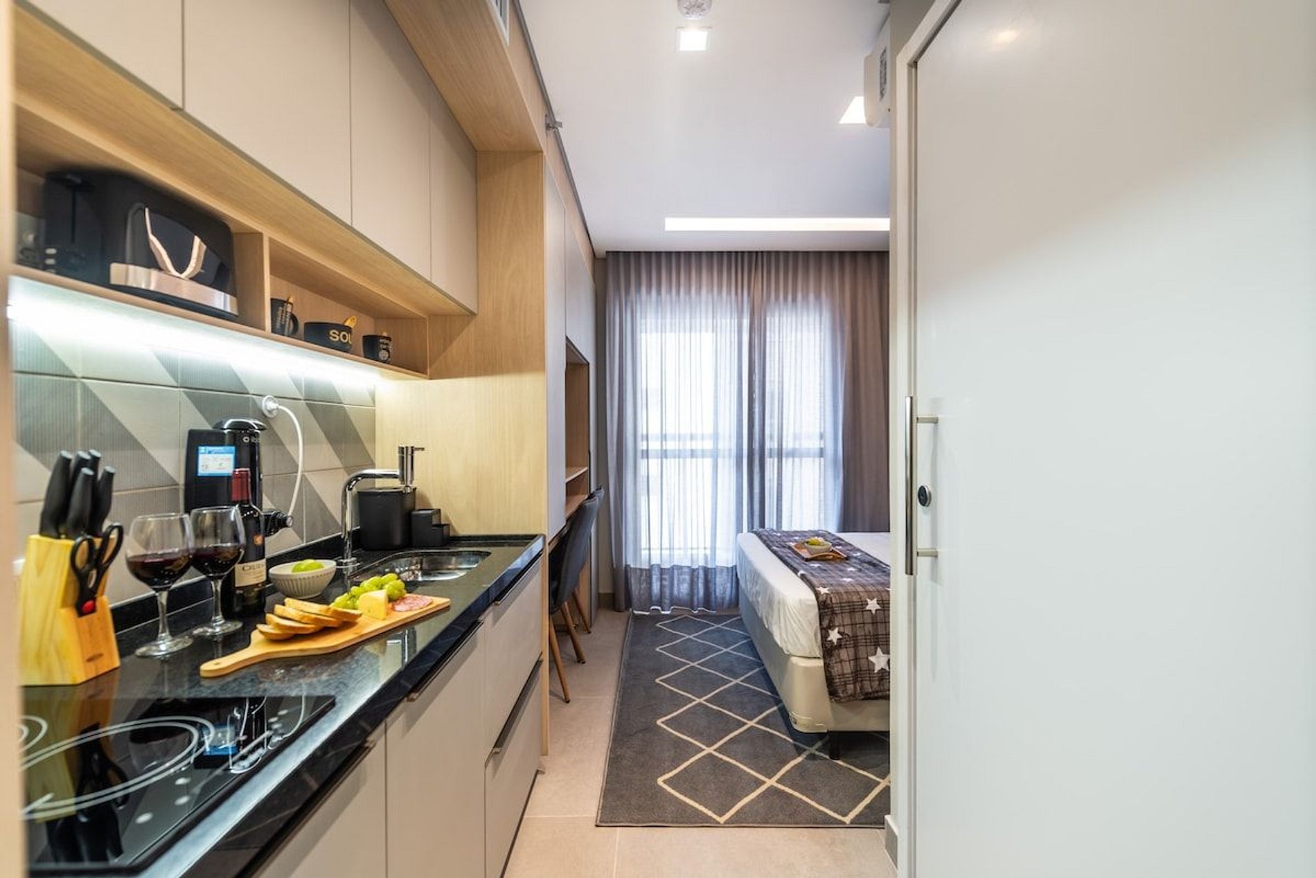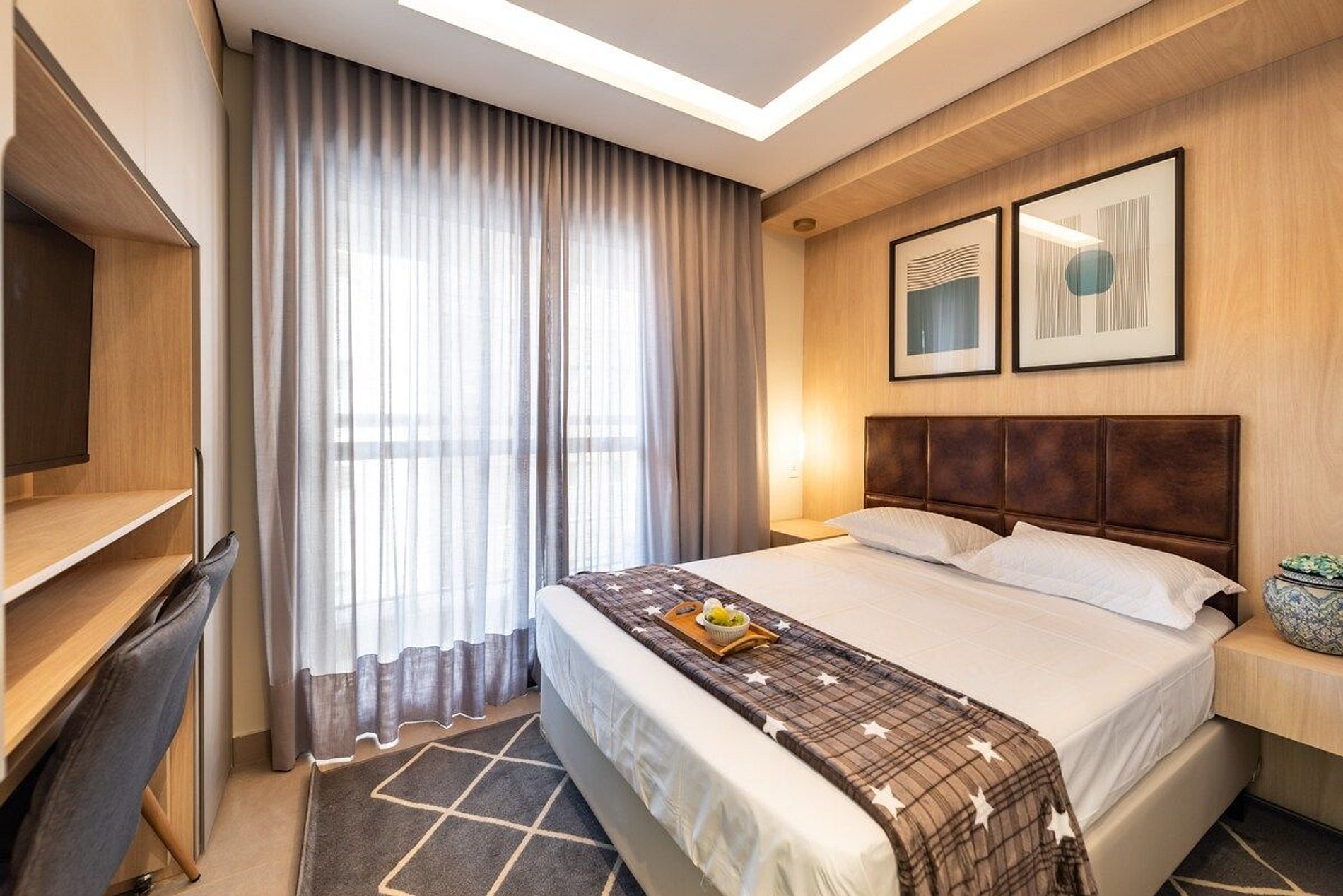 O studio é novo, bem decorado e com produtos de alta qualidade, trazendo conforto e aconchego em sua hospedagem. O prédio está localizado na zona sul de São Paulo, em um dos bairros mais sofisticados da cidade, chamado Moema. Ao redor do bairro é possível conhecer inúmeros restaurantes famosos, festas e o parque Ibirapuera. O edifício é residencial, com portaria 24 horas, coworking, piscina no rooftop e elevador.