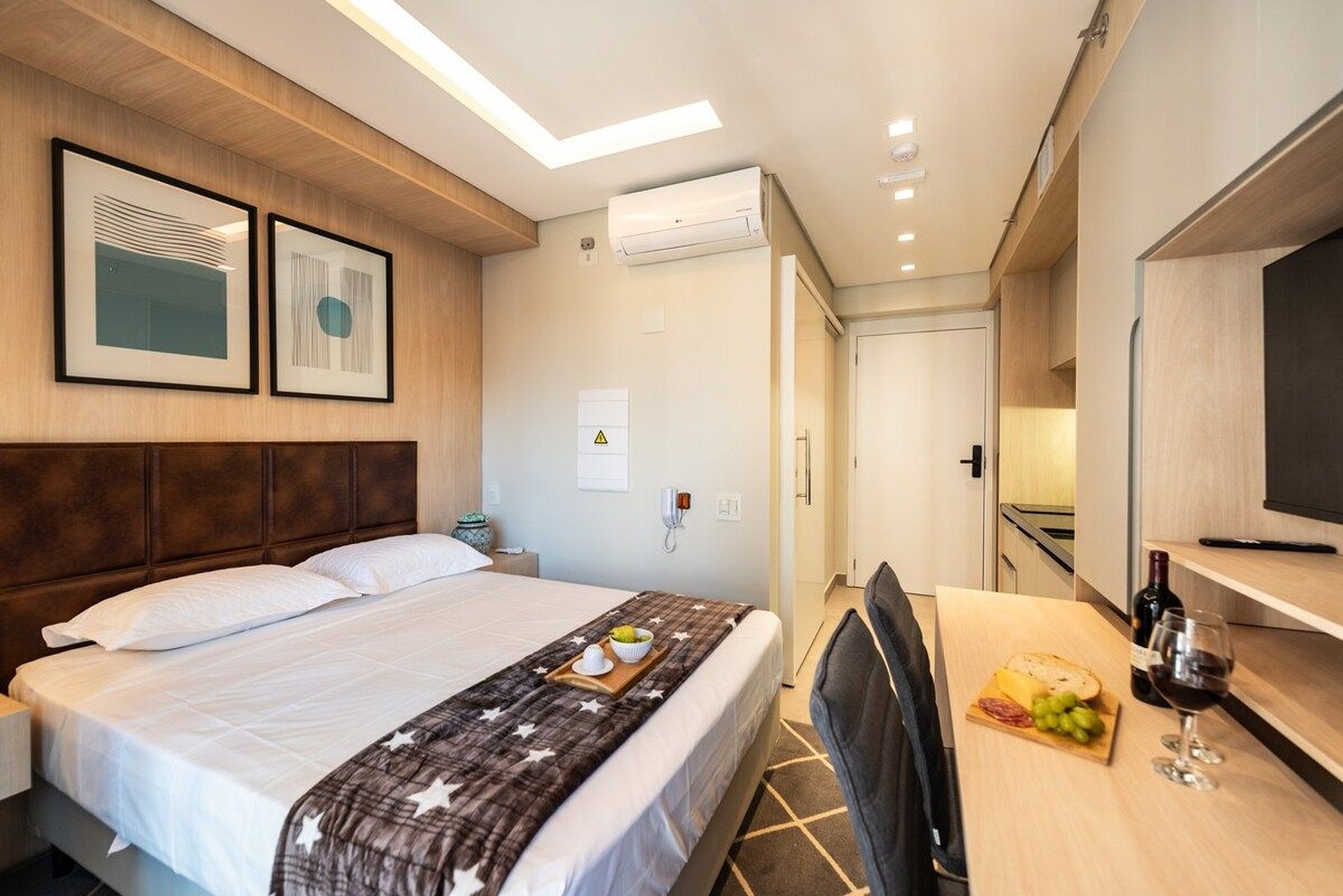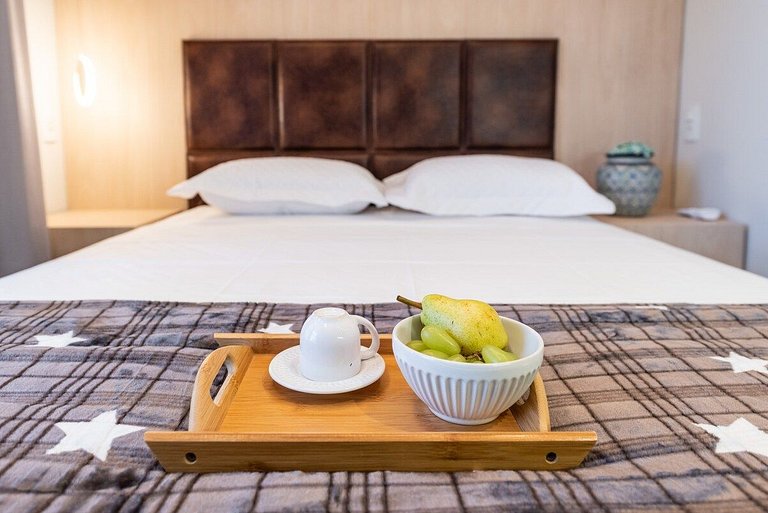 Nosso Loft é compacto, design moderno e bem decorado, tem 22 metros quadrados de área, contém uma cama de casal aconchegante e um chuveiro delicioso. Ideal para quem vem a trabalho ou a passeio. O edifício é lindíssimo e oferece comodidades como: piscina, coworking, academia e lavanderia OMO, facilitando a hospedagem e conforto de nossos hóspedes.