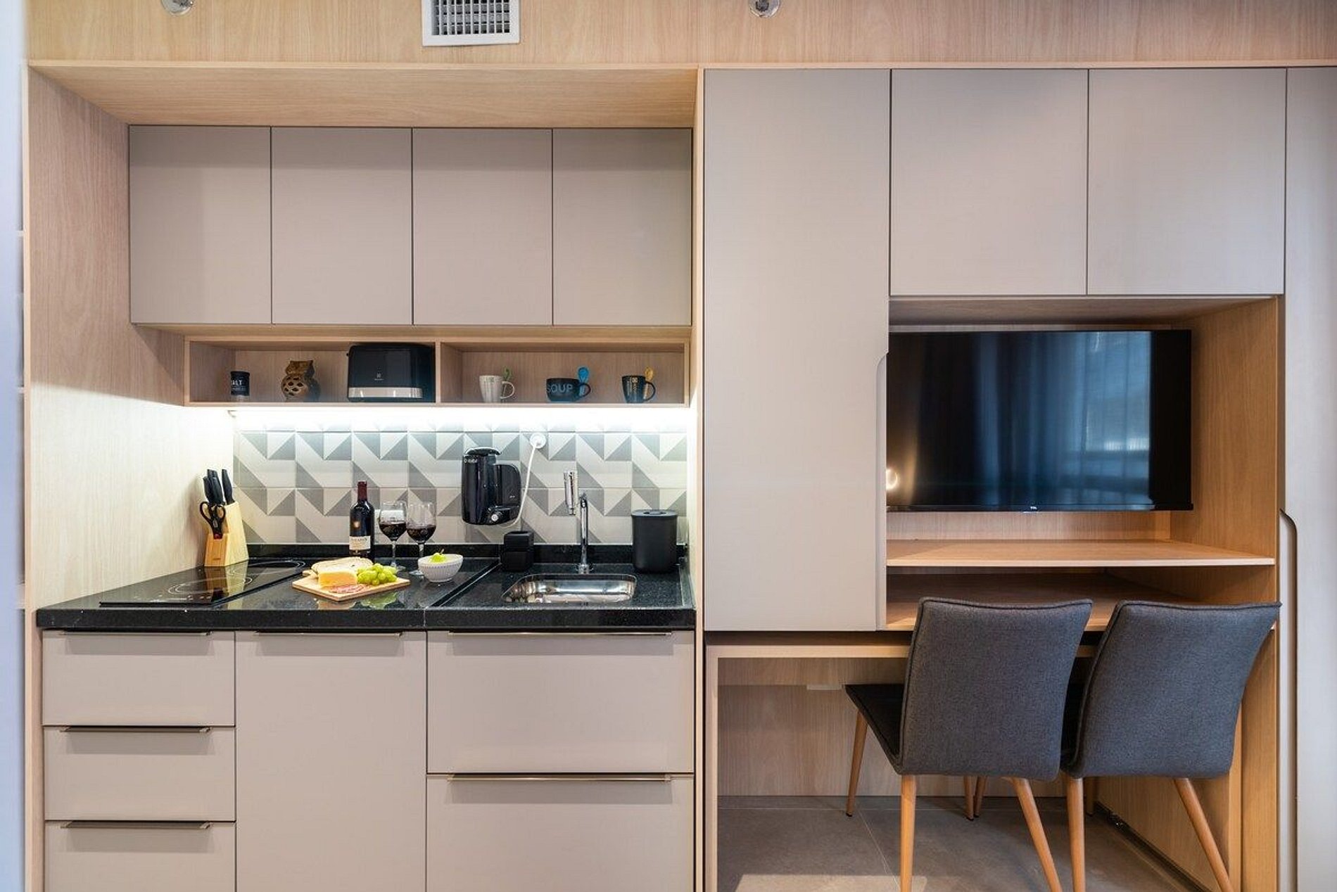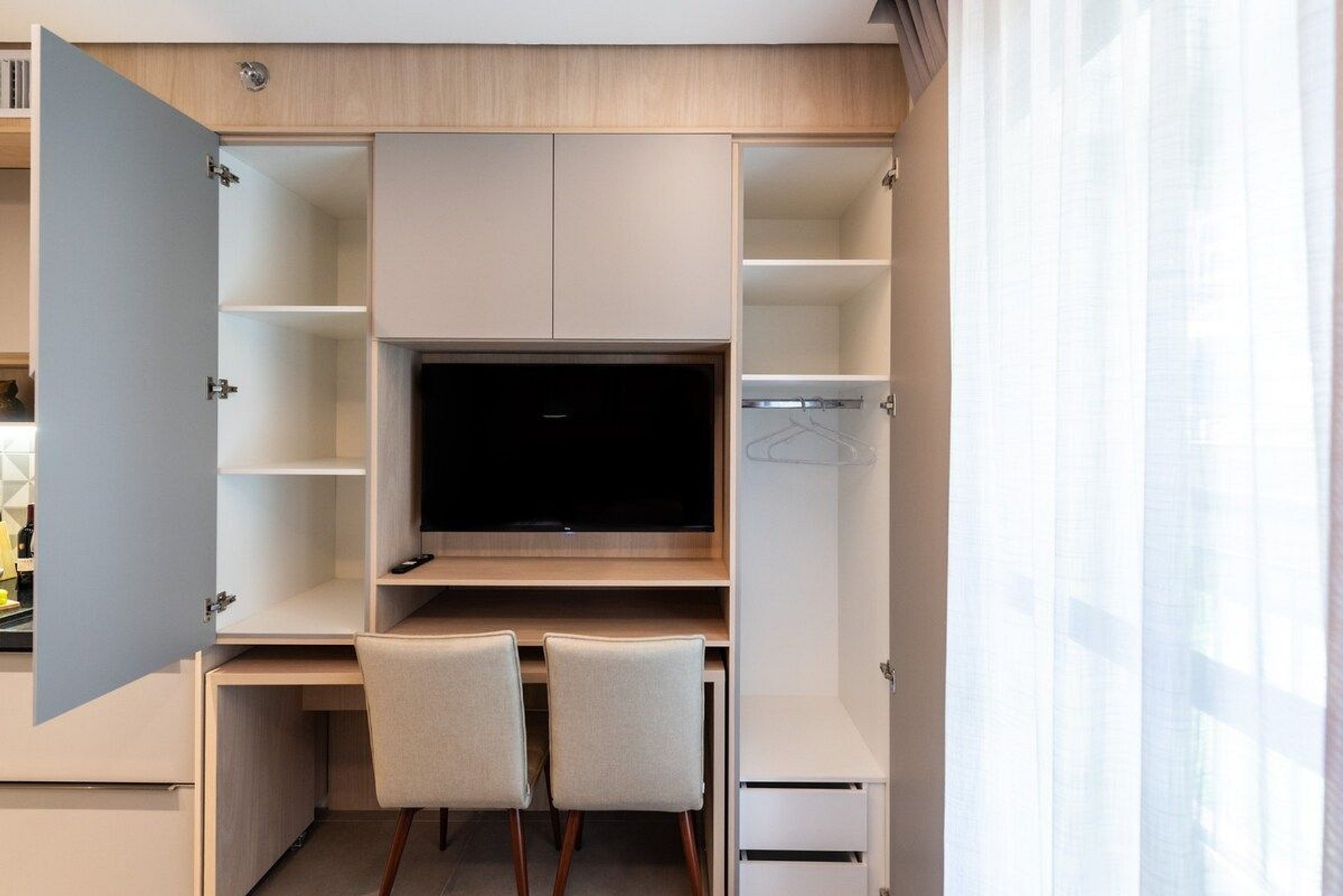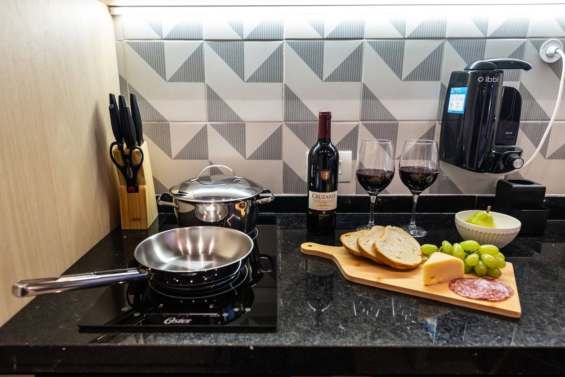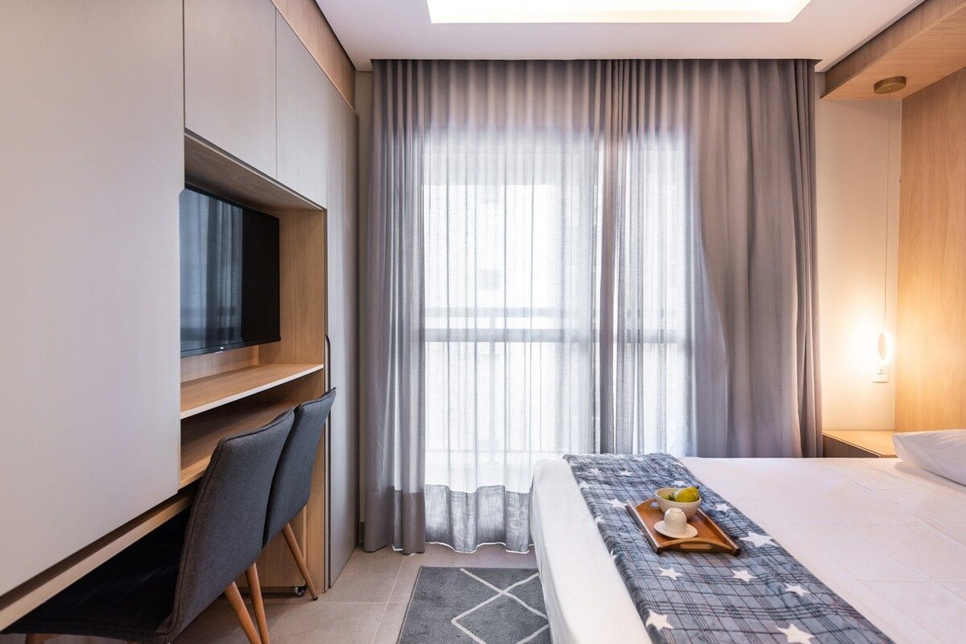 O studio é novo, bem decorado e com produtos de alta qualidade, trazendo conforto e aconchego em sua hospedagem. O prédio está localizado na zona sul de São Paulo, em um dos bairros mais sofisticados da cidade, chamado Moema. Ao redor do bairro é possível conhecer inúmeros restaurantes famosos, festas e o parque Ibirapuera. O edifício é residencial, com portaria 24 horas, coworking, piscina no rooftop e elevador.